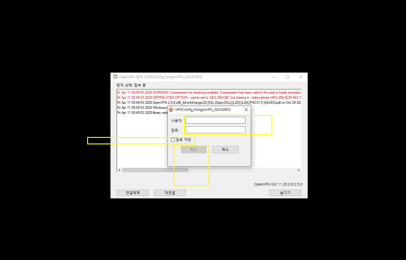 바탕화면에 만들어지 vpn서버 접속 바로가기 아이콘을 실행하여 접속상태를 확인합니다.